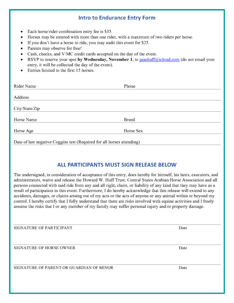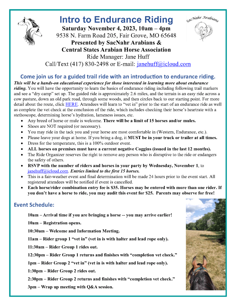 Download the Intro to Endurance Riding Clinic Information below:
